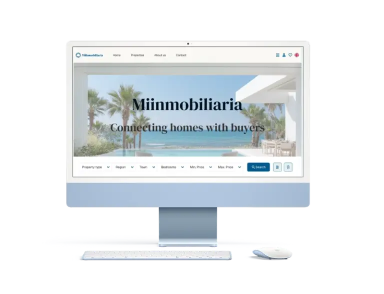 Miinmobiliaria es un proyecto diseñado para cerrar la brecha entre el mercado inmobiliario de lujo y el comprador digital. El objetivo principal fue crear una experiencia de búsqueda que transmitiera la exclusividad y la calma del Mediterráneo, sin sacrificar la eficiencia técnica que requiere una transacción de este tipo.